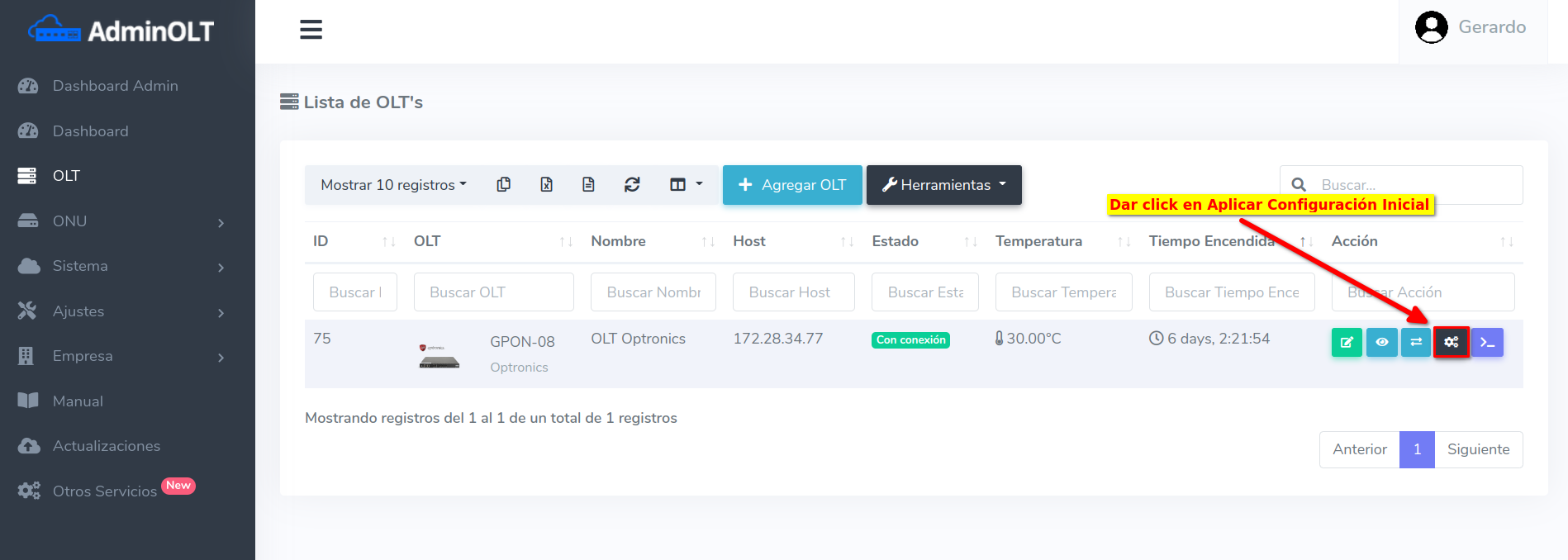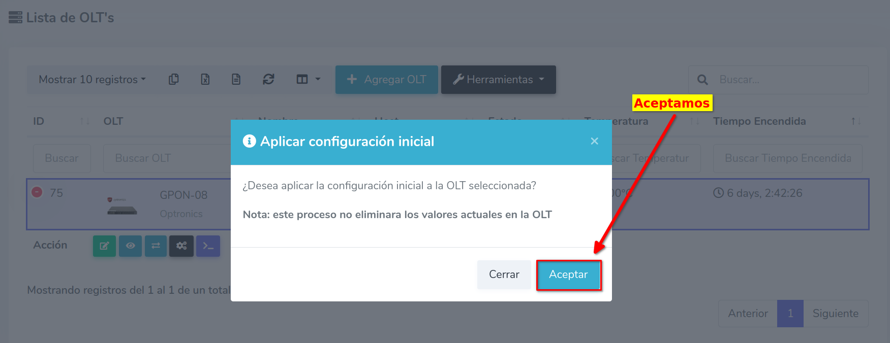 1 Ir a Lista de OLT