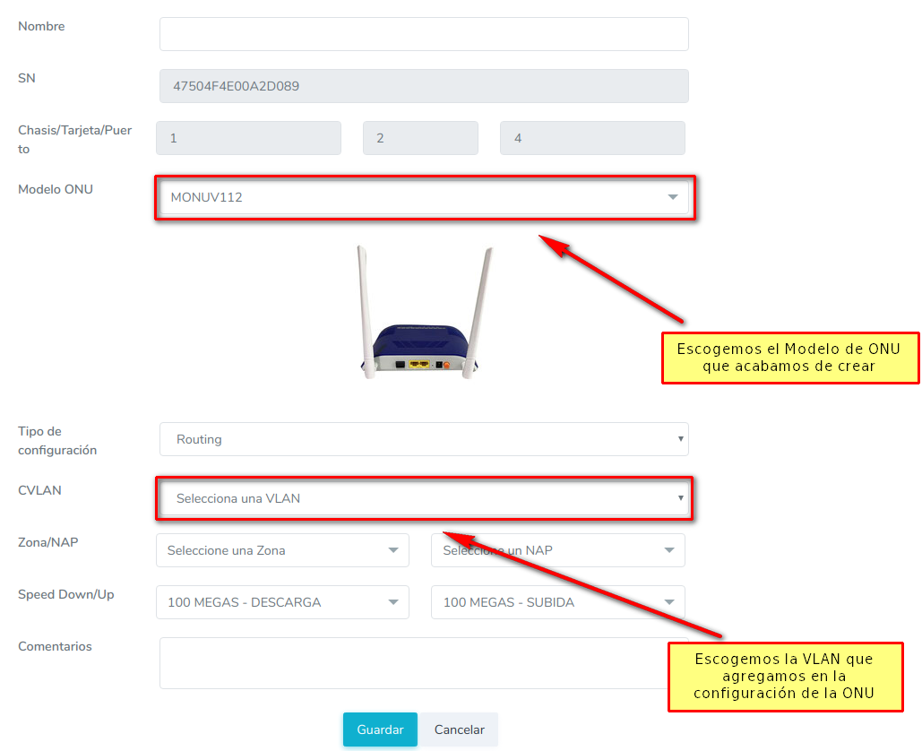 3 Autorizar ONU desde el sistema