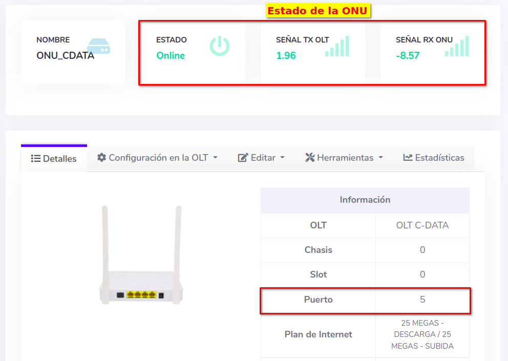 Tome en cuenta que el puerto PON de la OLT debe tener deshabilitados los modos Auto y Adaptive. Si tiene dudas sobre este tema puede consultar el siguiente manual; Configurar Puerto PON