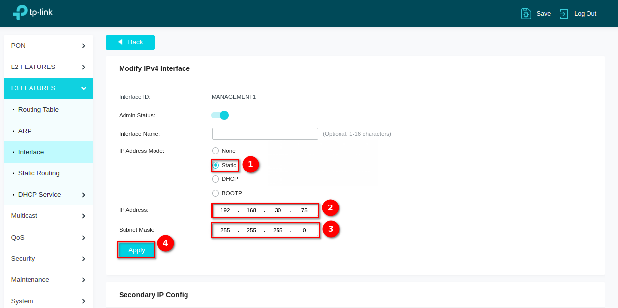 6 Configuramos la nueva IP de la OLT
