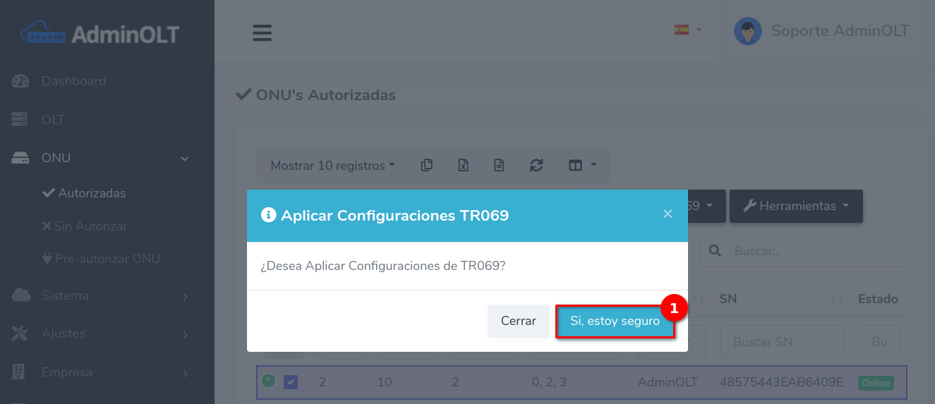 Autorizar ONU con TR069
