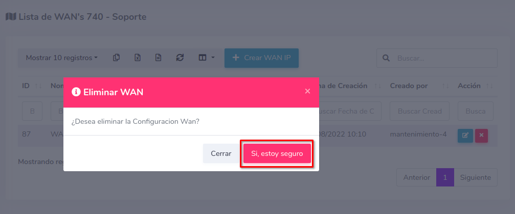 Para confirmar la acción, presione el botón con la leyenda Si, estoy seguro.
