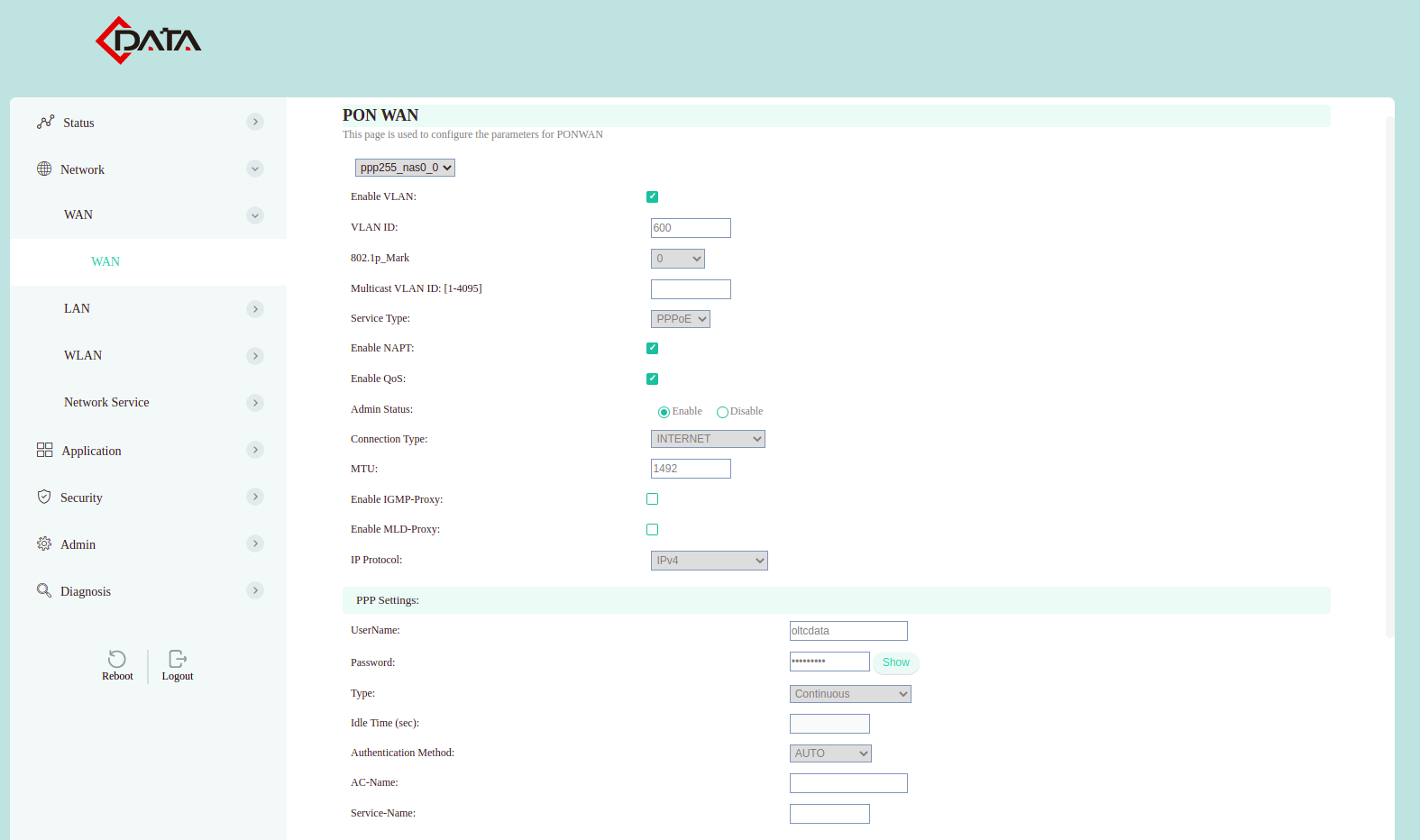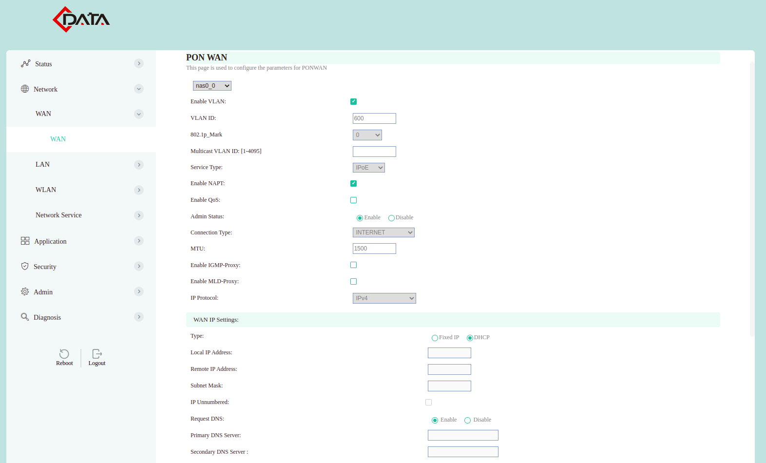 Al entrar a la interfaz de la ONU podremos ver que la configuración WAN se ha creado.
