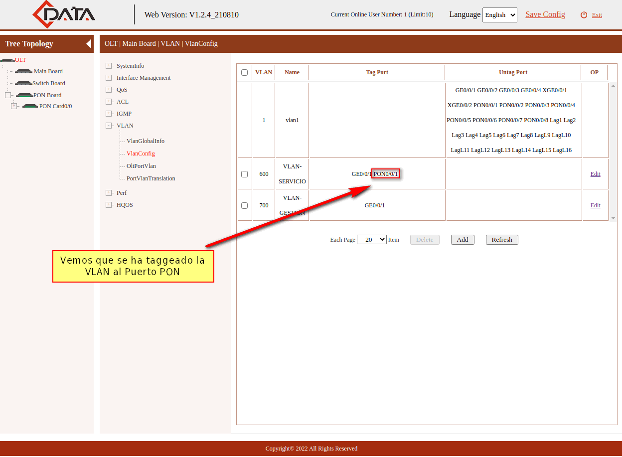 4 Taggear VLAN de Servicio a Puerto PON