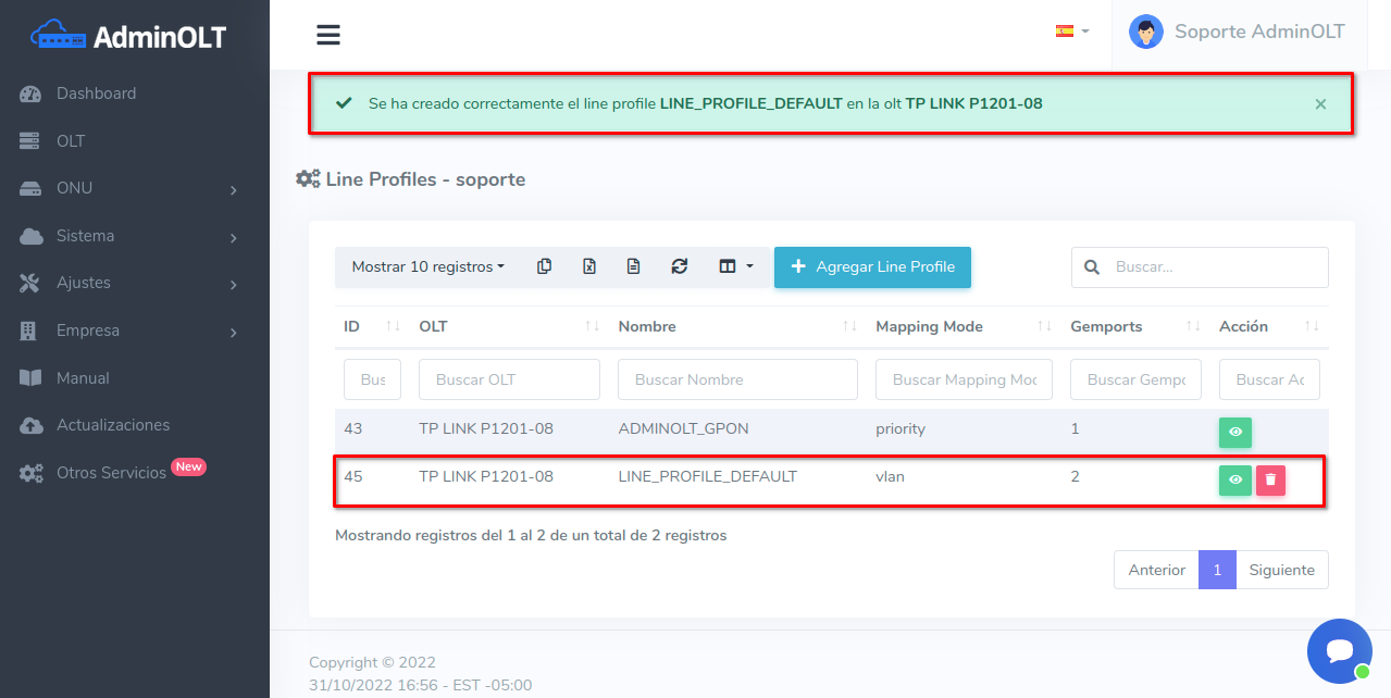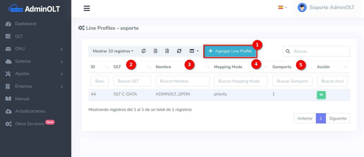 - OLT: La OLT a la que pertenece el Line Profile.