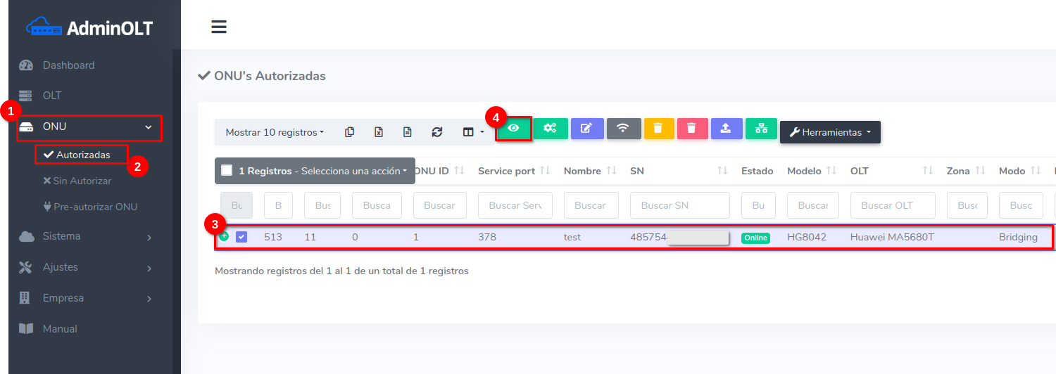 1Dirijase a la sección de ONU > Autorizadas > Editar Plan de Velocidad