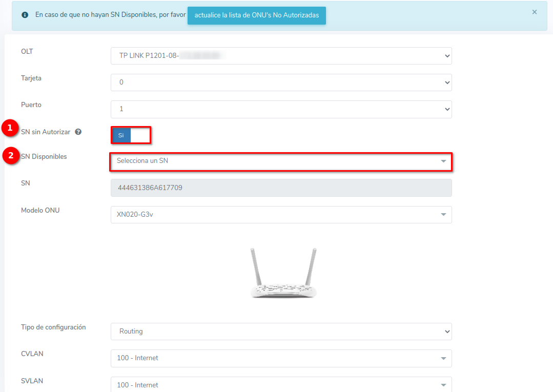 Pasos para editar información de ONU Autorizada por SN