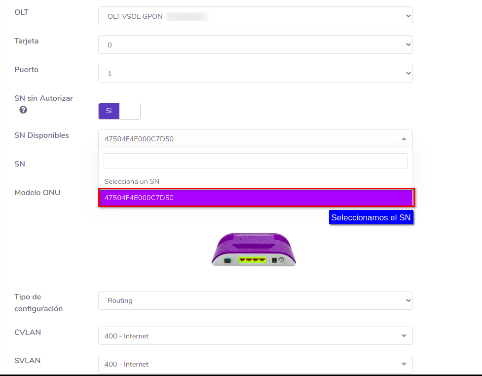 En AdminOLT podemos editar información de una ONU Autorizada en la OLT, supongamos que alguna de las ONUs que tenemos autorizadas en el sistema se estropea. Tomaremos como ejemplo esta situacion para explicar el propósito de esta función. Asi que en ese caso en AdminOLT al editar ONU por SN podemos tomar información de alguna ONU no Autorizada y usarla, sin perder la configuración inicial que teníamos.