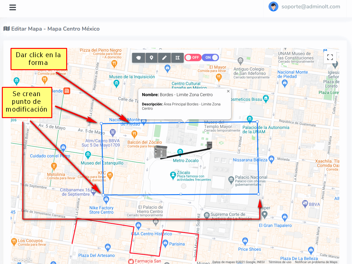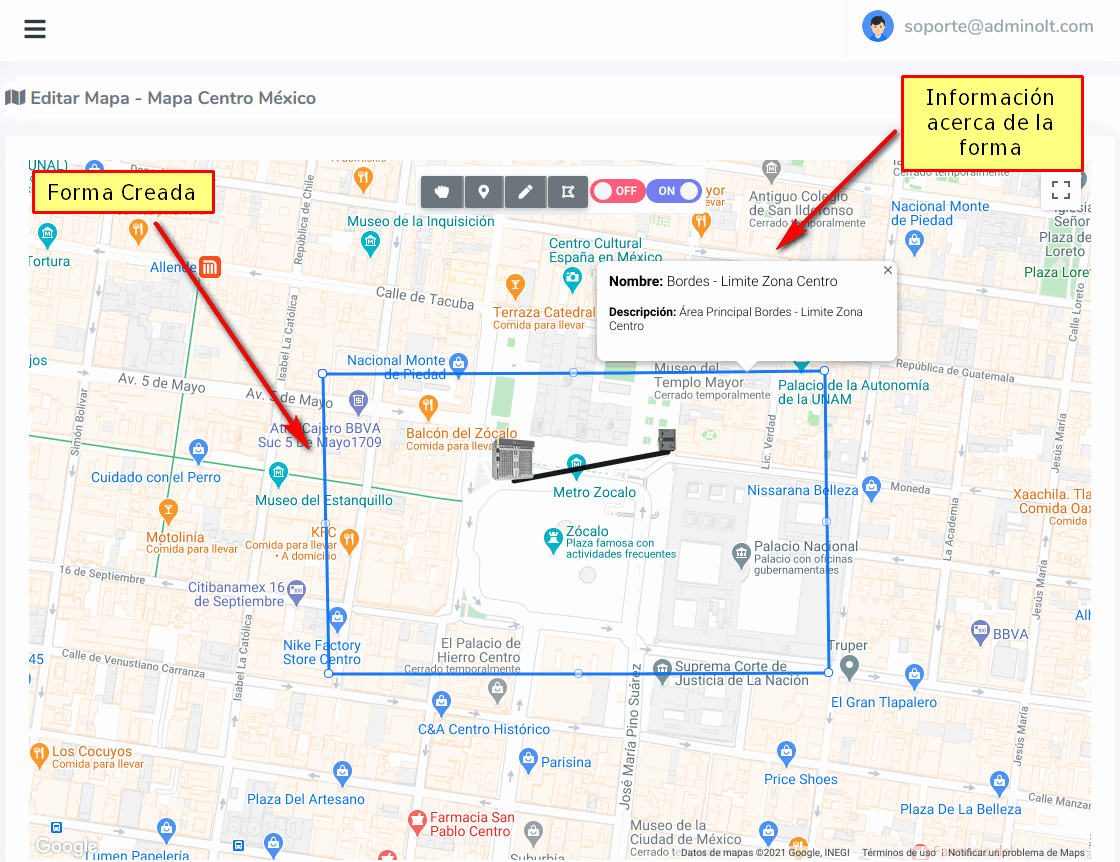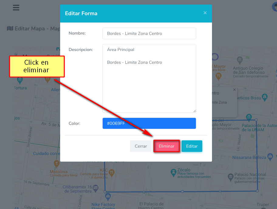 Damos click en la opción Manipular Mapa para terminar de dibujar la forma.