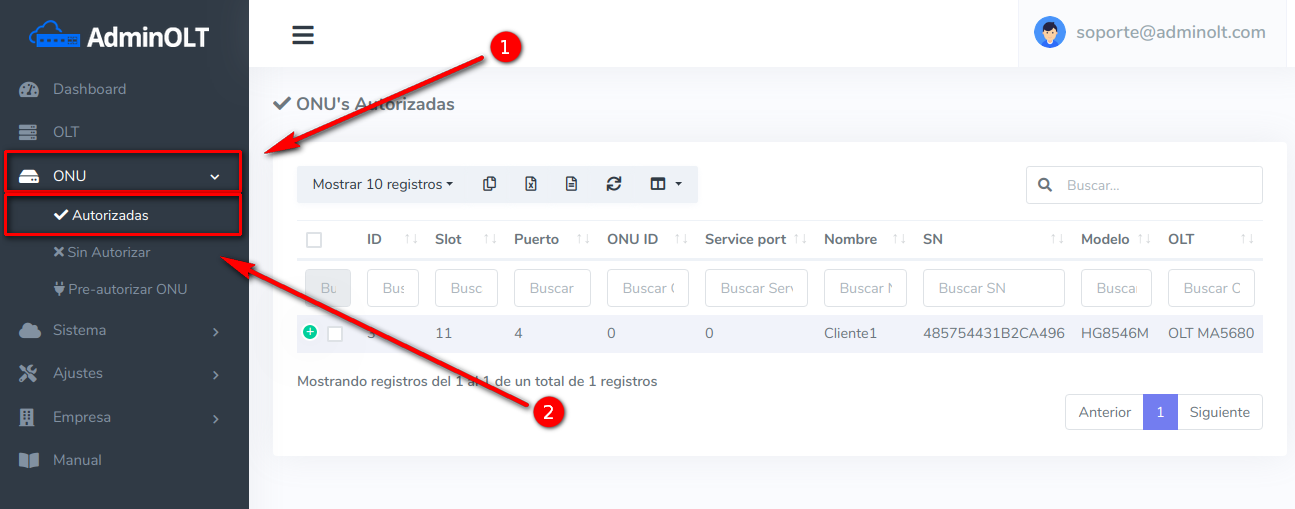 ¿Como reinicio una ONU Autorizada desde AdminOLT?