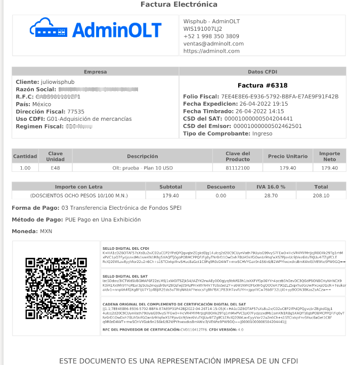 Para que una empresa extranjera pueda generar sus Facturas Fiscales del SAT, es necesario avisar a soporte tecnico([email protected]) para que le activen la opción de timbrar